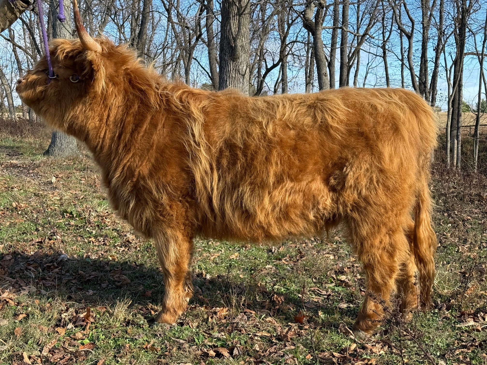 Coral is available for sale through the National Highland Sale January 24, 2026. She is sold bred to Sunset Double Take